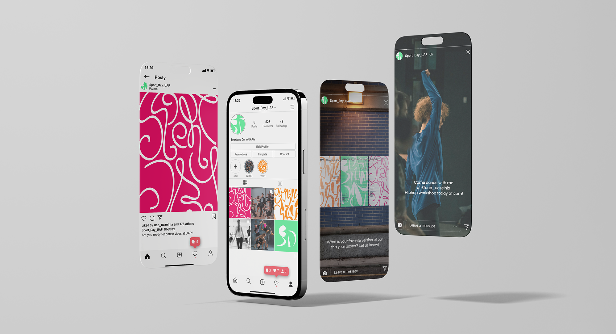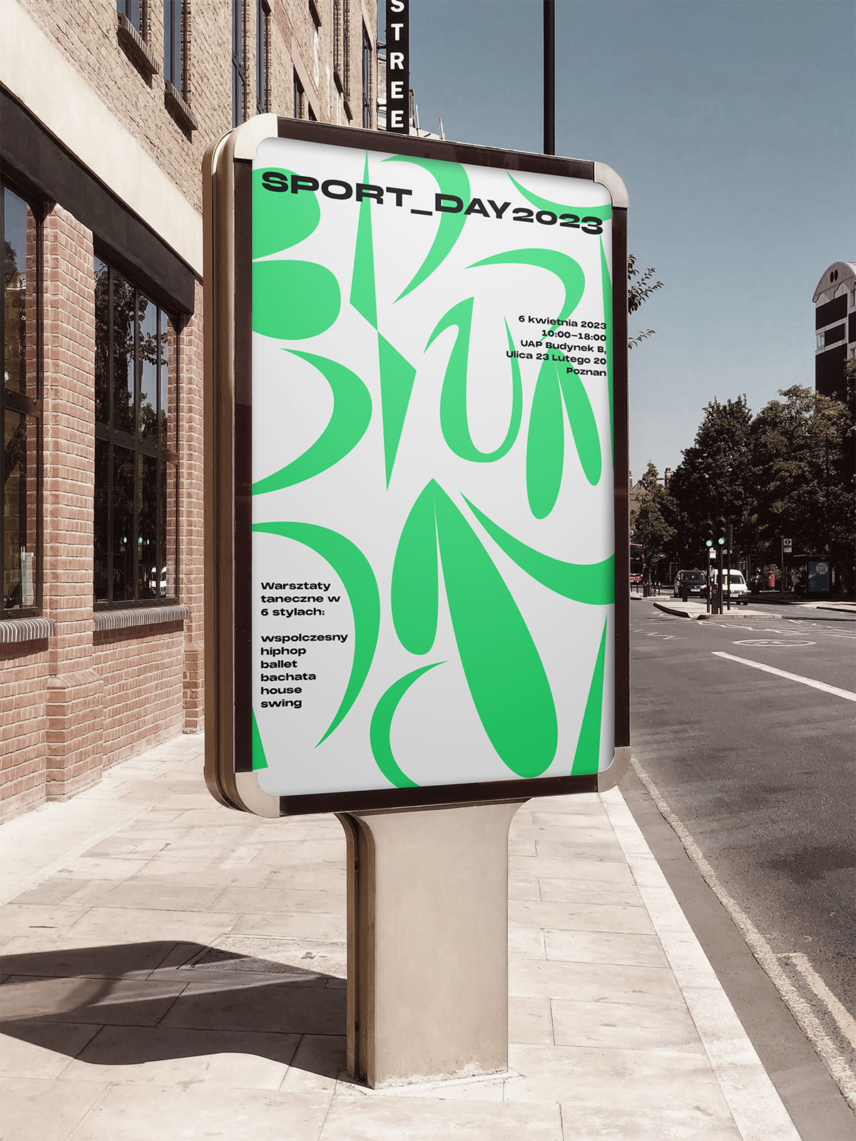 Visuals are based on typography elements inspired by various dance styles, including hip-hop, ballet and contemporary dance, created to present dynamics, movement and space that are fundamental concepts of sport.